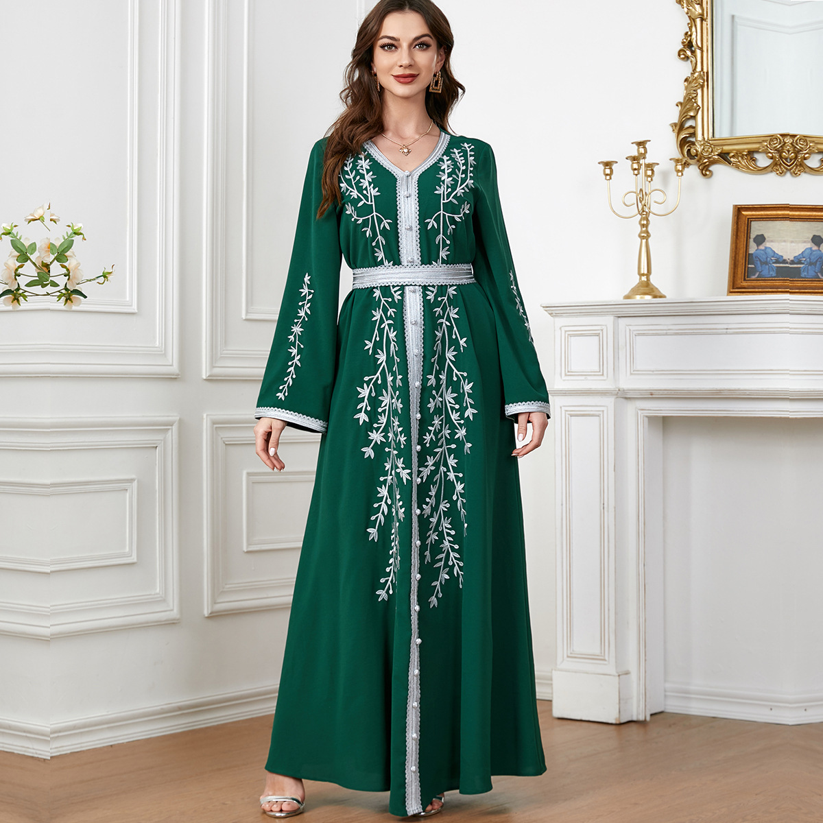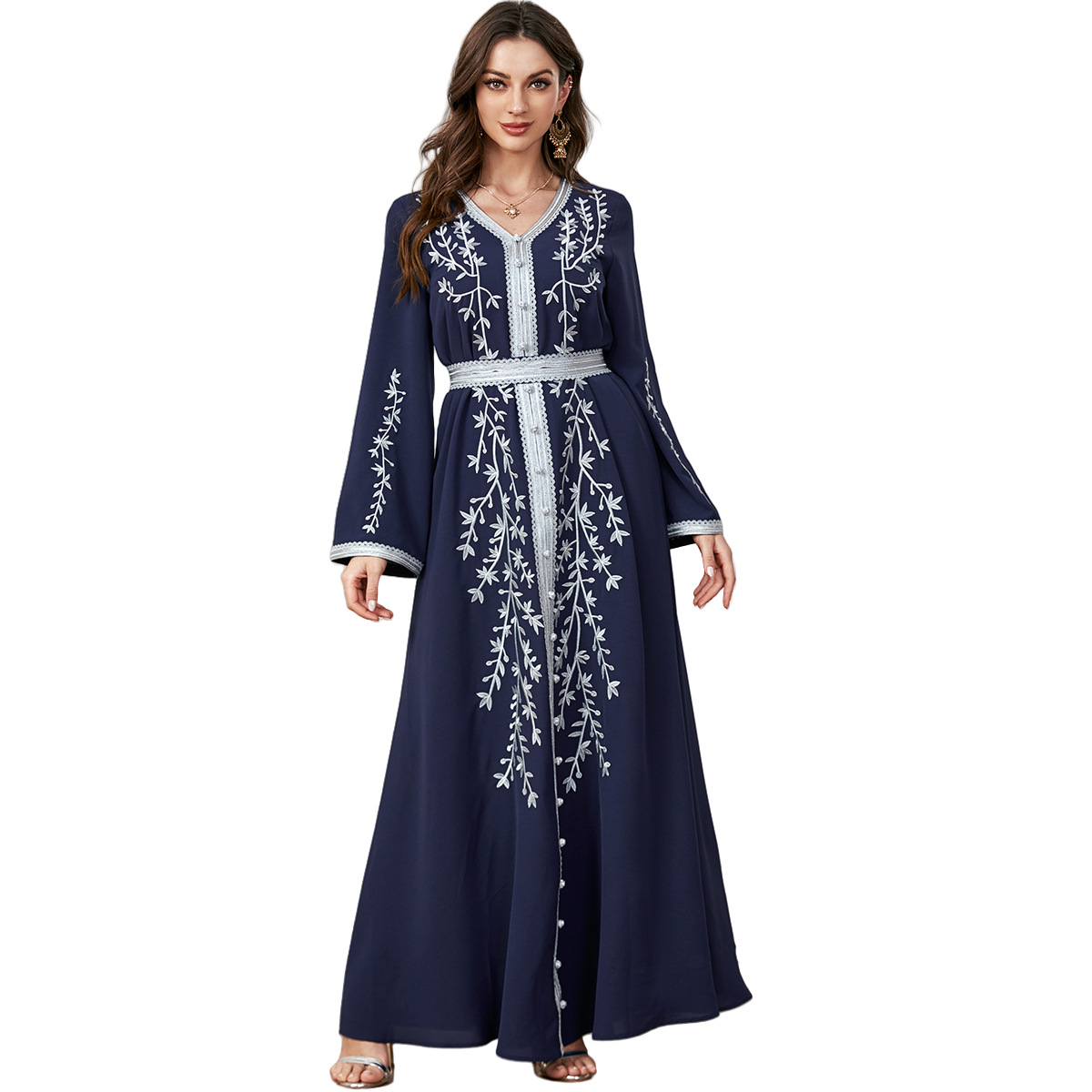 3144 Middle East Cross-Border Arabic Clothing New Foreign Trade Wholesale Loose Embroidered Skirt Long-Sleeved Loose Dress