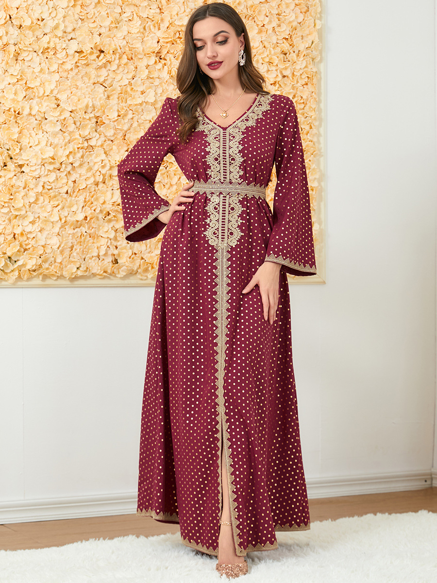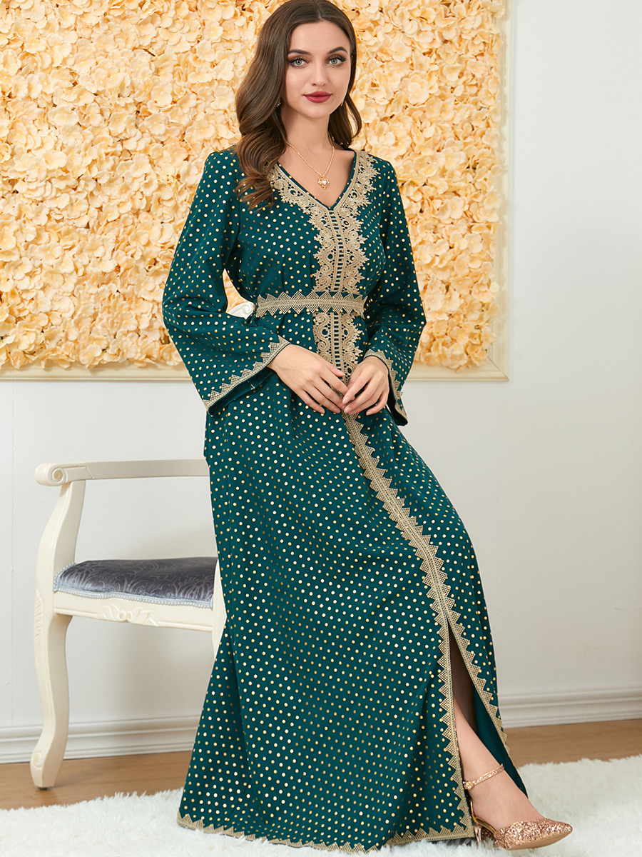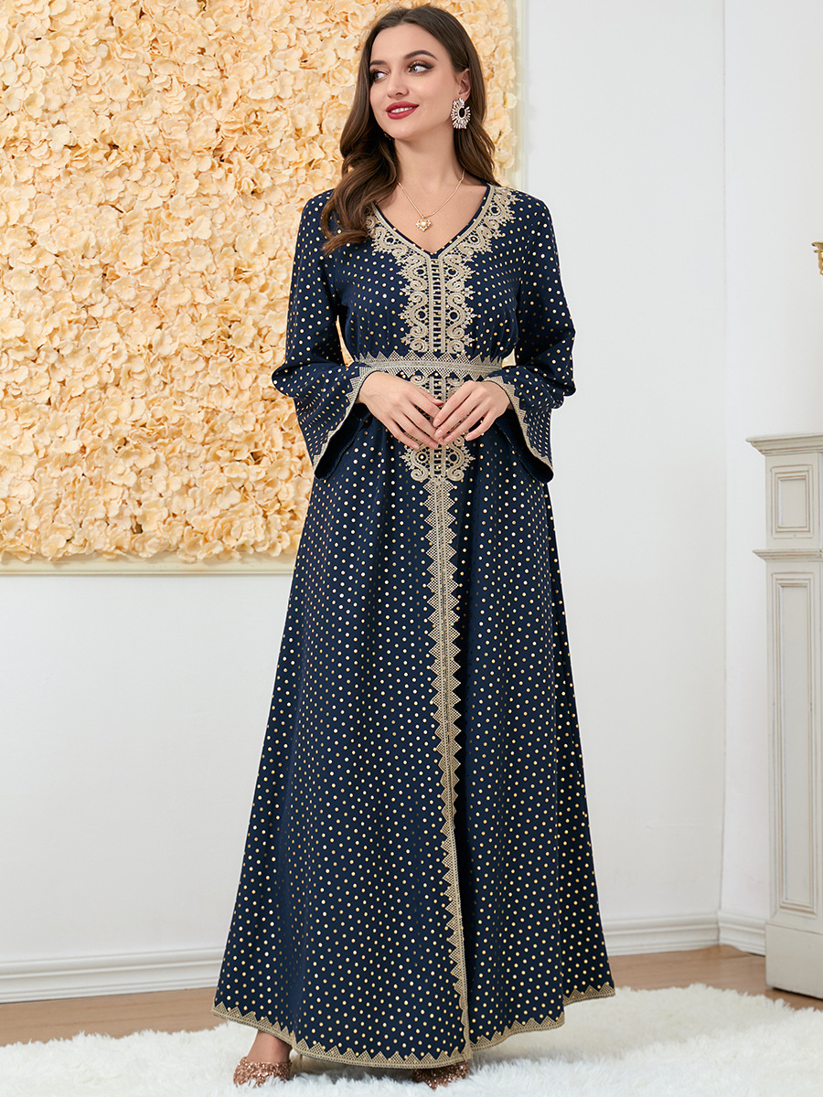 3199 Autumn Dress High-End Autumn Long-Sleeved Dress V-Neck Basic Long Dress Fashionable Women’s Clothing Wholesale