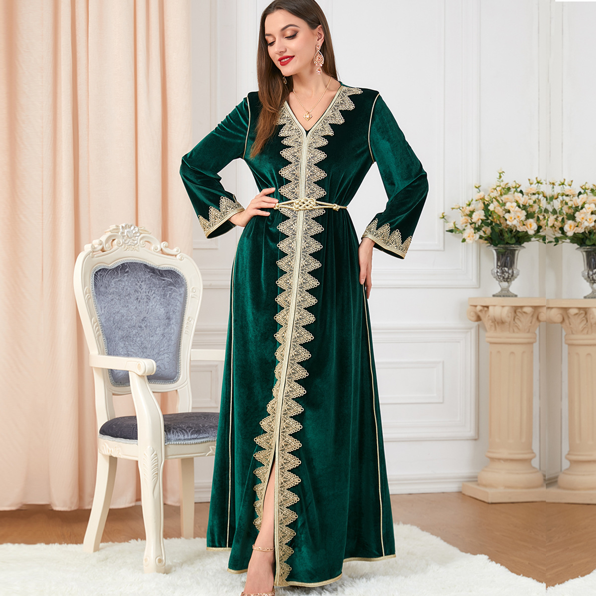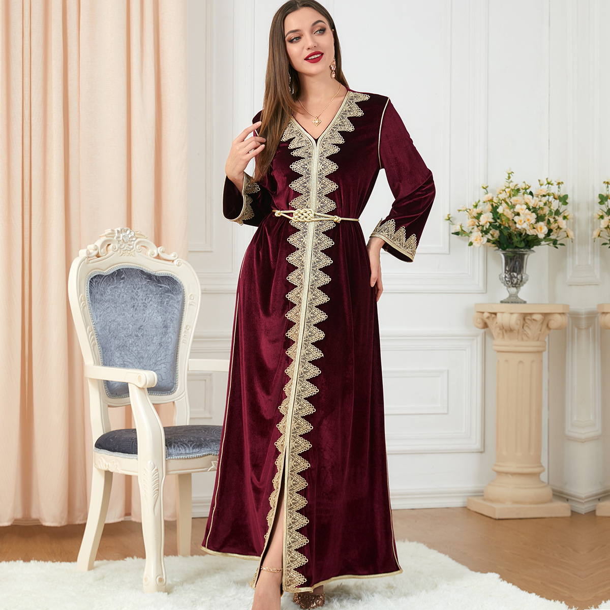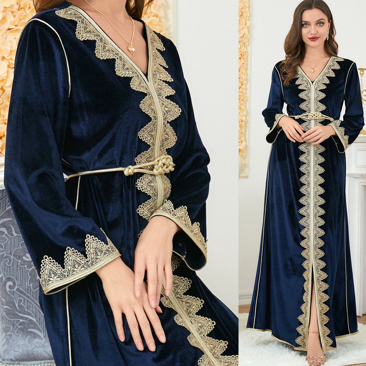 3260 Middle East Foreign Trade Clothing Aliexpress Amazon Southeast Asia Gold Velvet Dress Women’s Clothing Drop Shipping