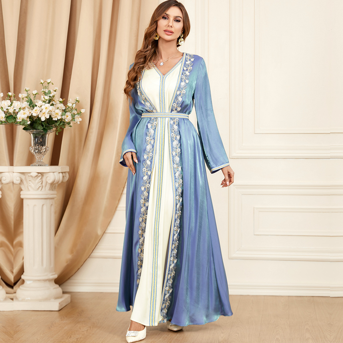 3454 Middle East Dubai New Evening Dress Suit Cross-Border Foreign Trade Muslim Women’s Robe Two-Piece Dress