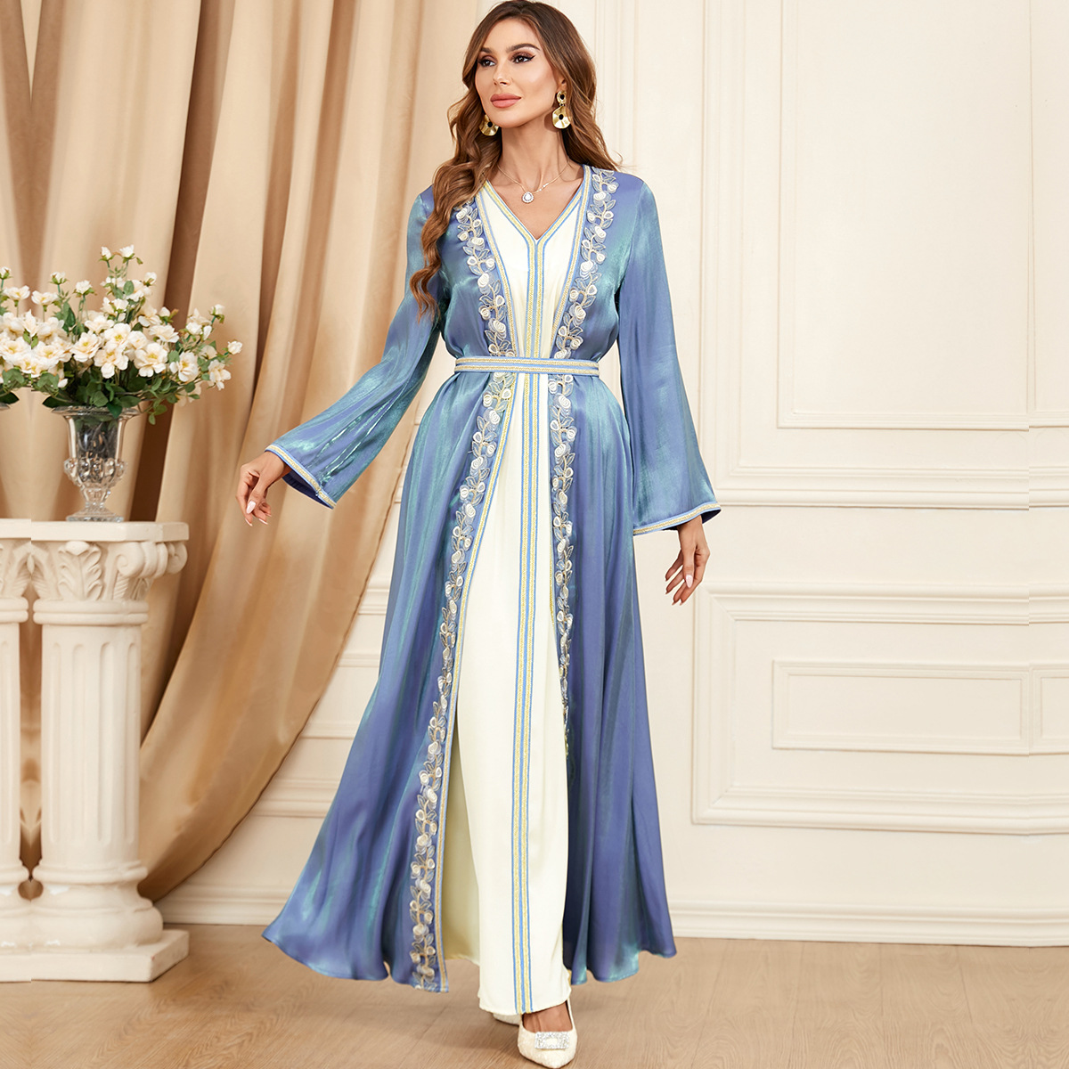 Be the first to review “3454 Middle East Dubai New Evening Dress Suit Cross-Border Foreign Trade Muslim Women’s Robe Two-Piece Dress”
