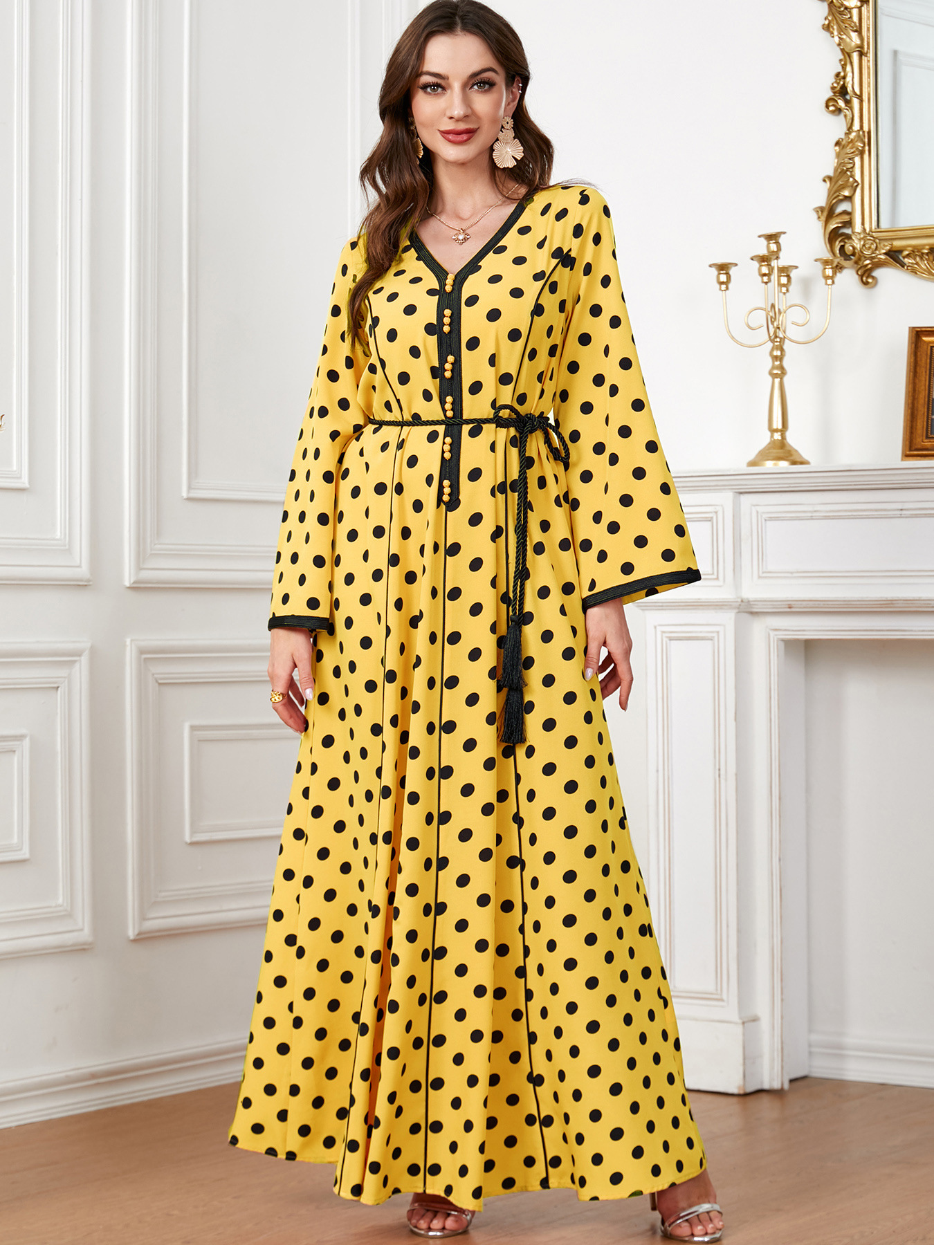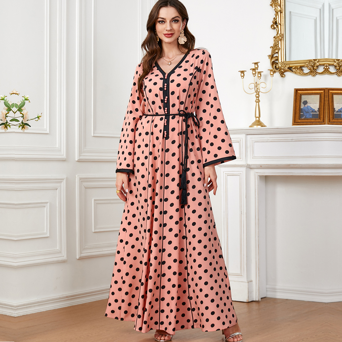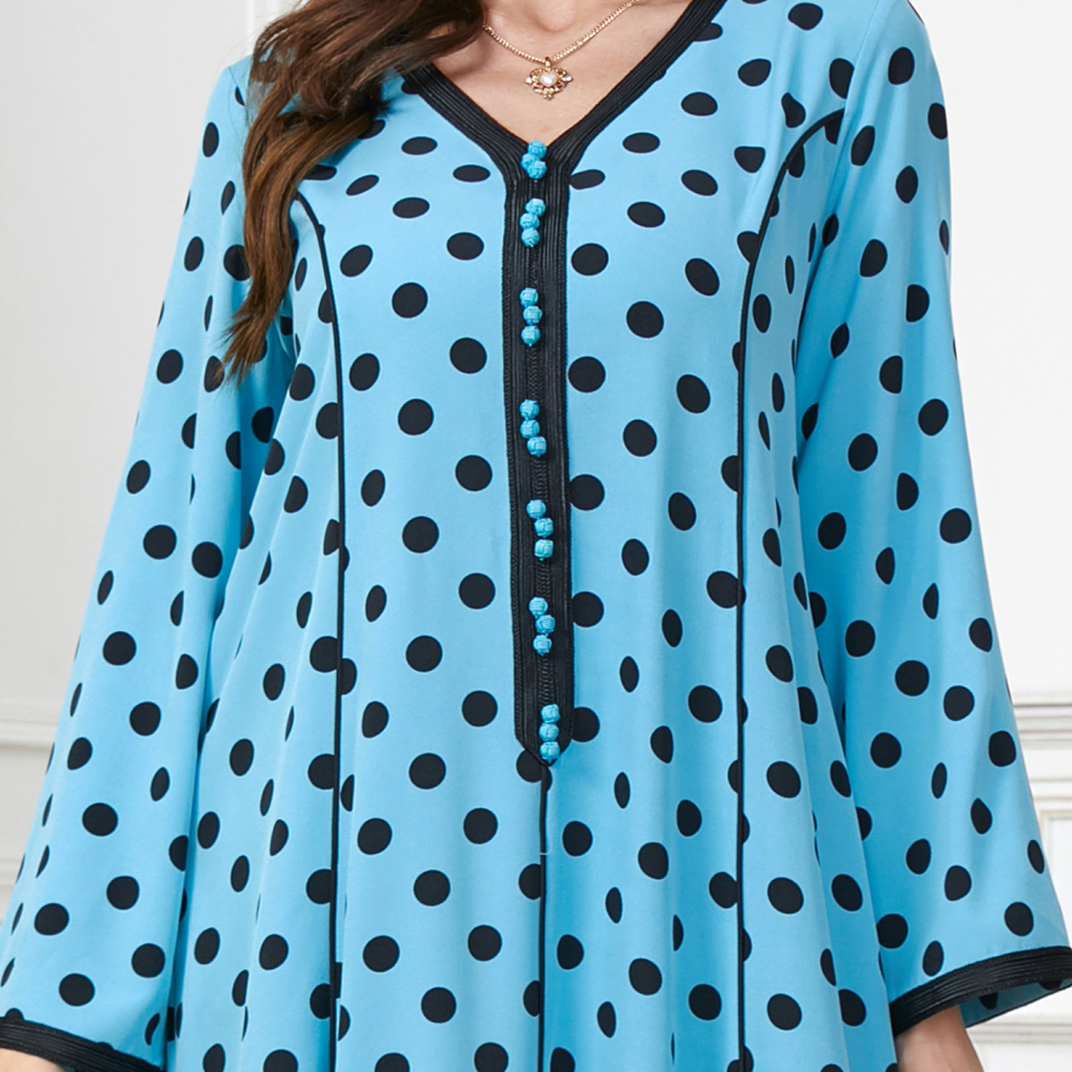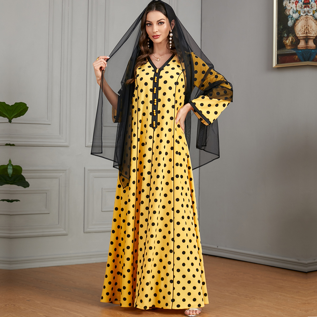 3512 2023 Arabian Summer New Polka Dot Long Skirt European And American Fashion Temperament Splicing Women’s Dress