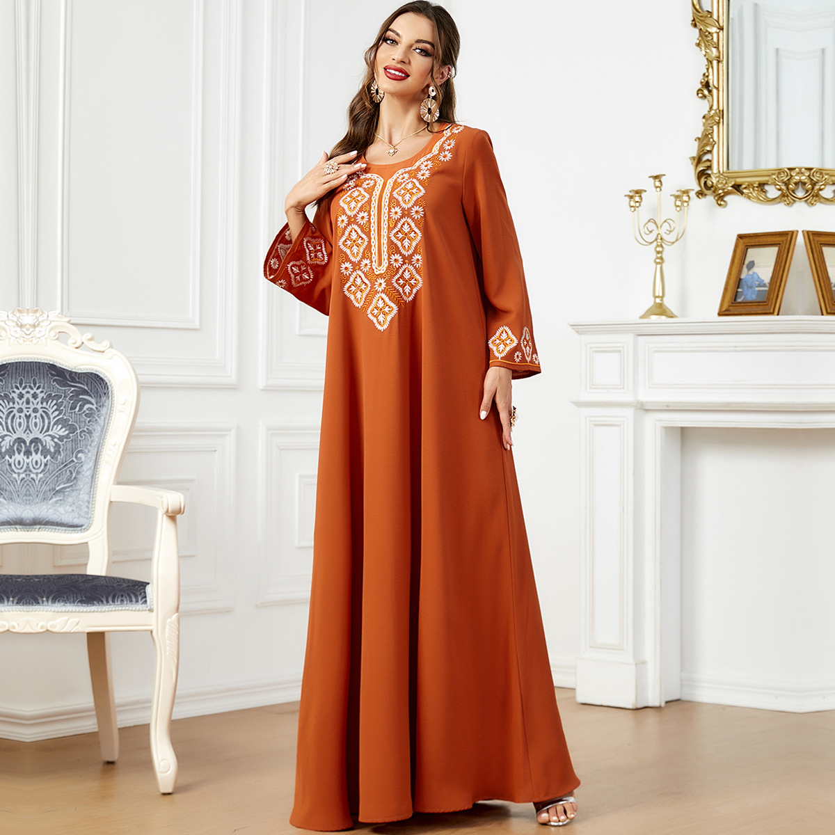 Be the first to review “3567 Muslim Women’s Solid Color Embroidery Muslim Middle Eastern Women’s Arabic Clothing Long-Sleeved Dress”