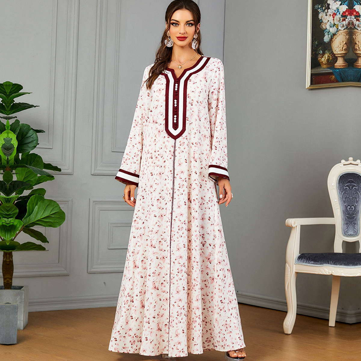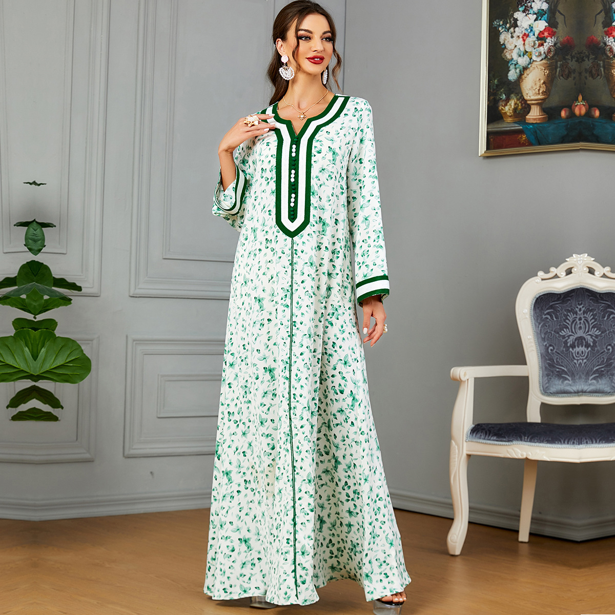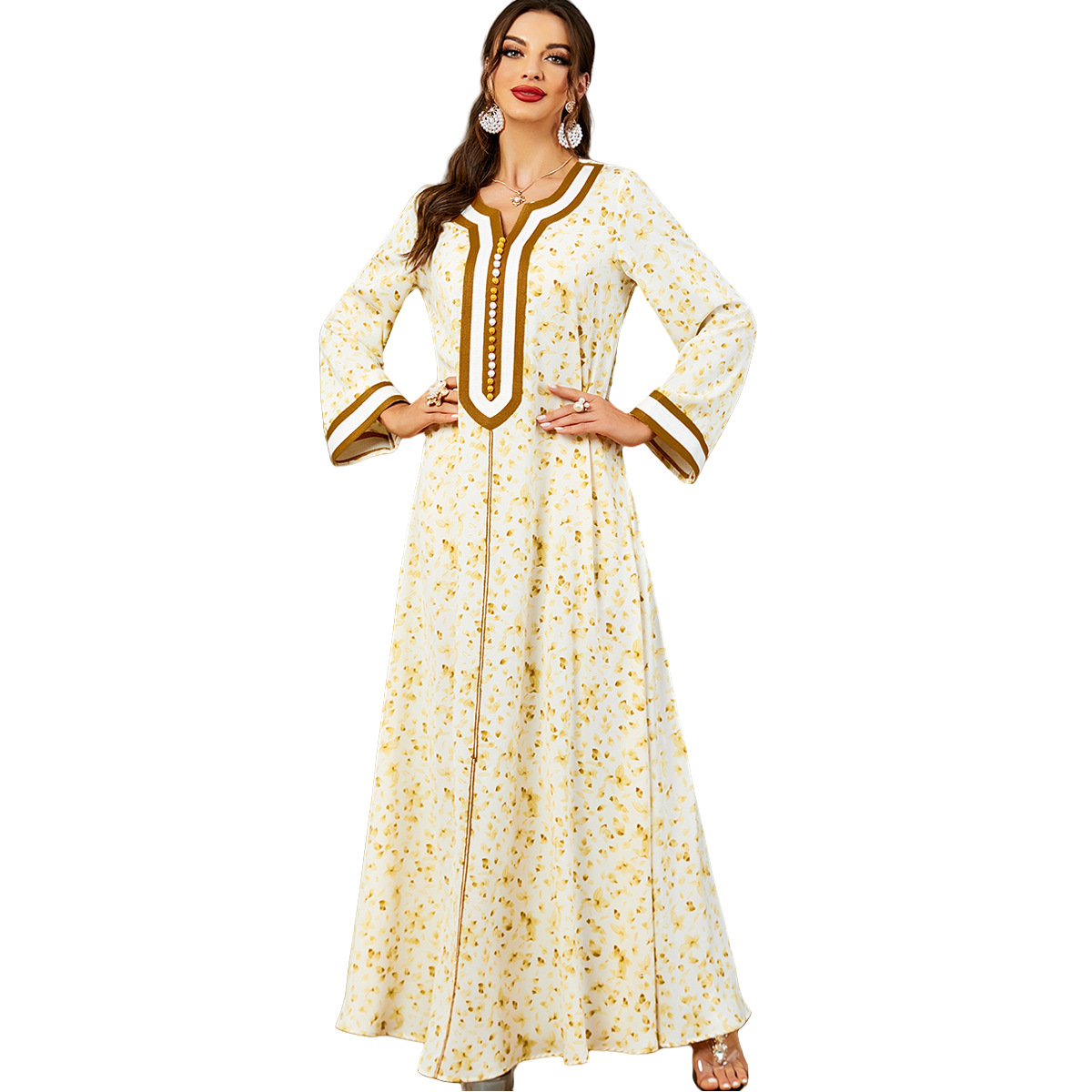 3569 Muslim Evening Dress Towel Embroidered Women Peg Button Fashion Kaftan Arabic Abaya Dress