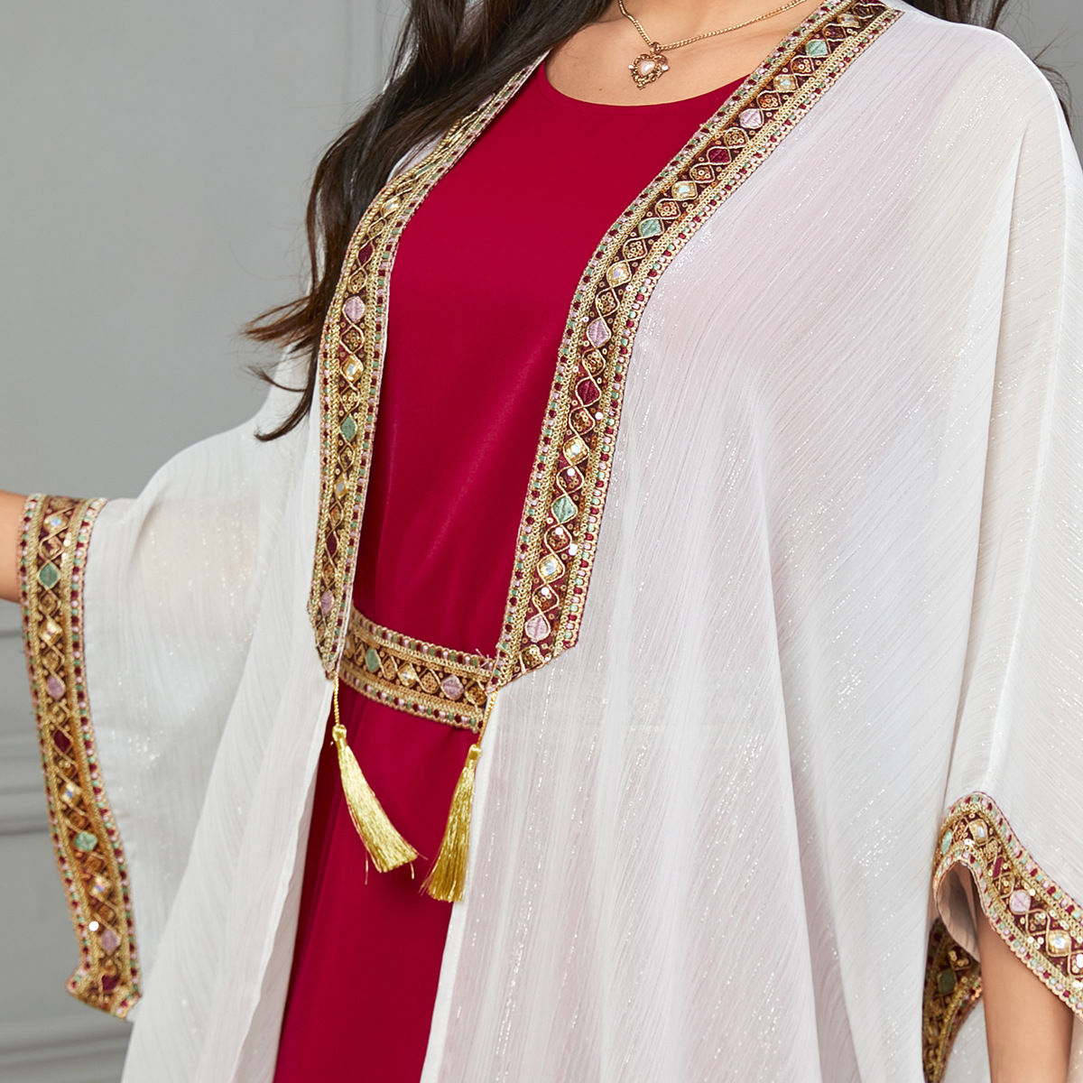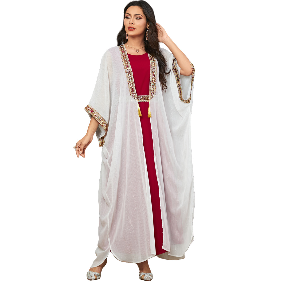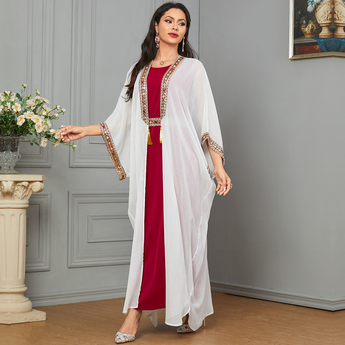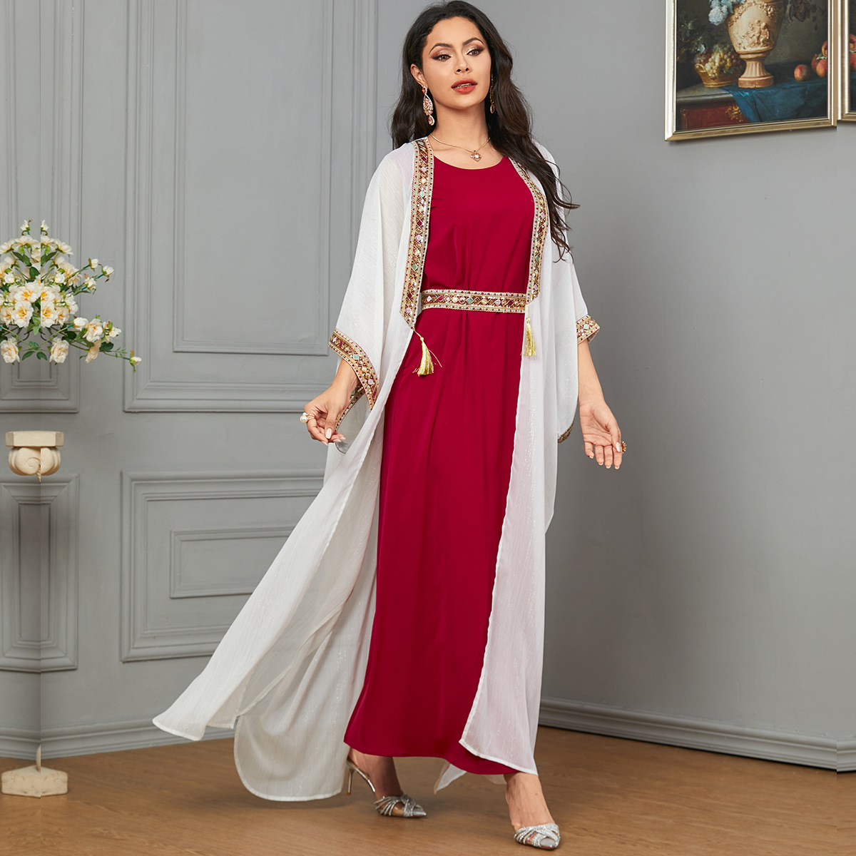 3688 Middle East Cross-Border European And American Foreign Trade 2024 New Muslim Robe Dubai Long Skirt Two-Piece Dress