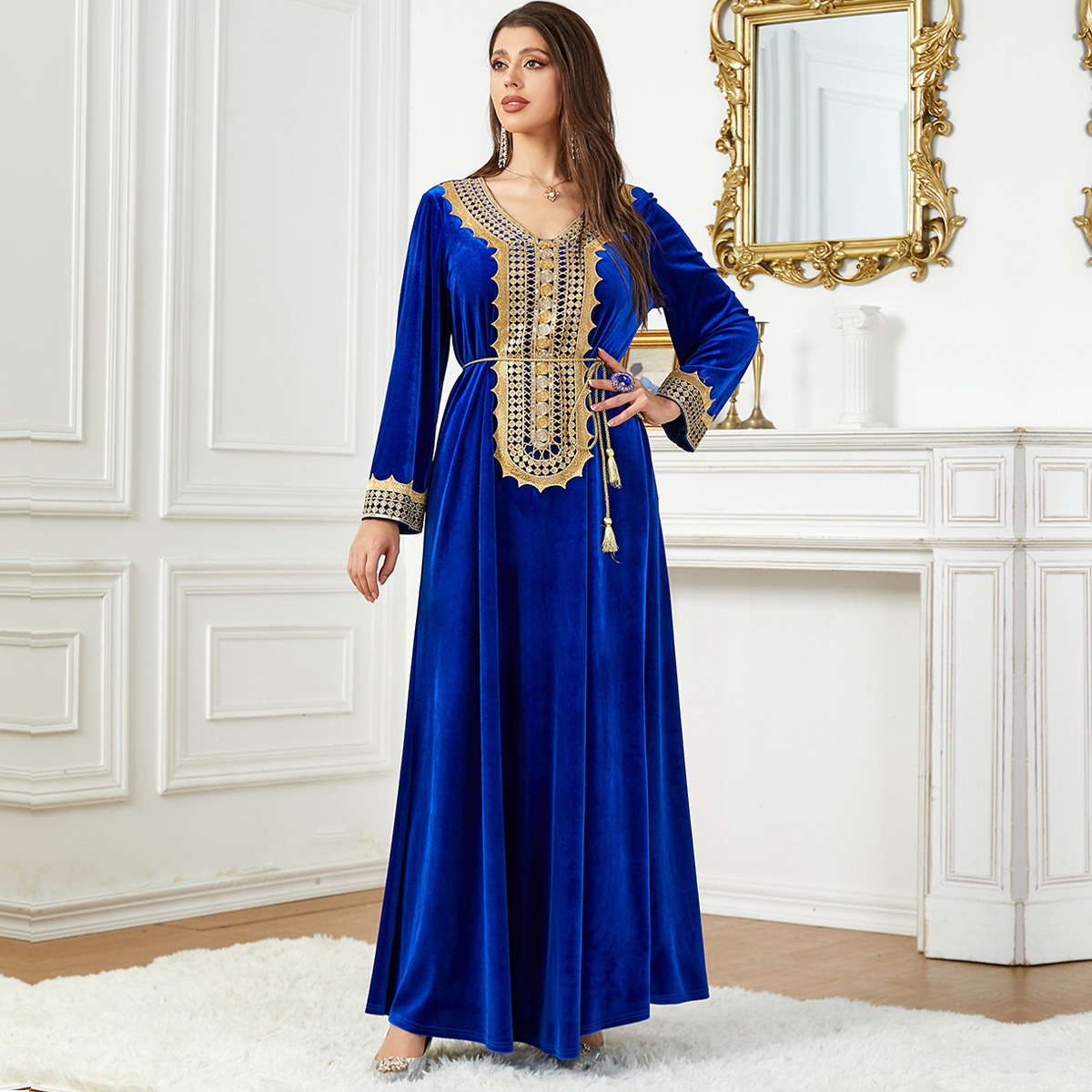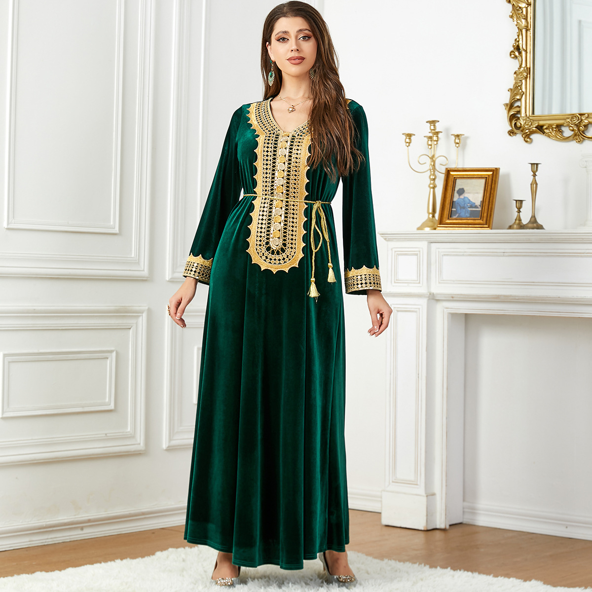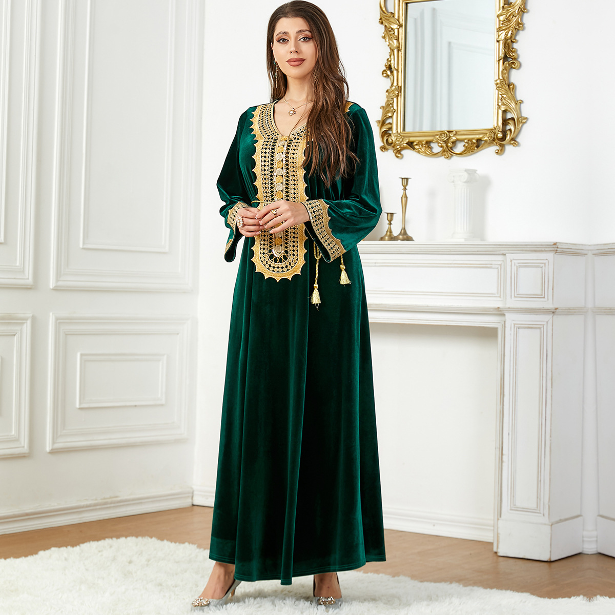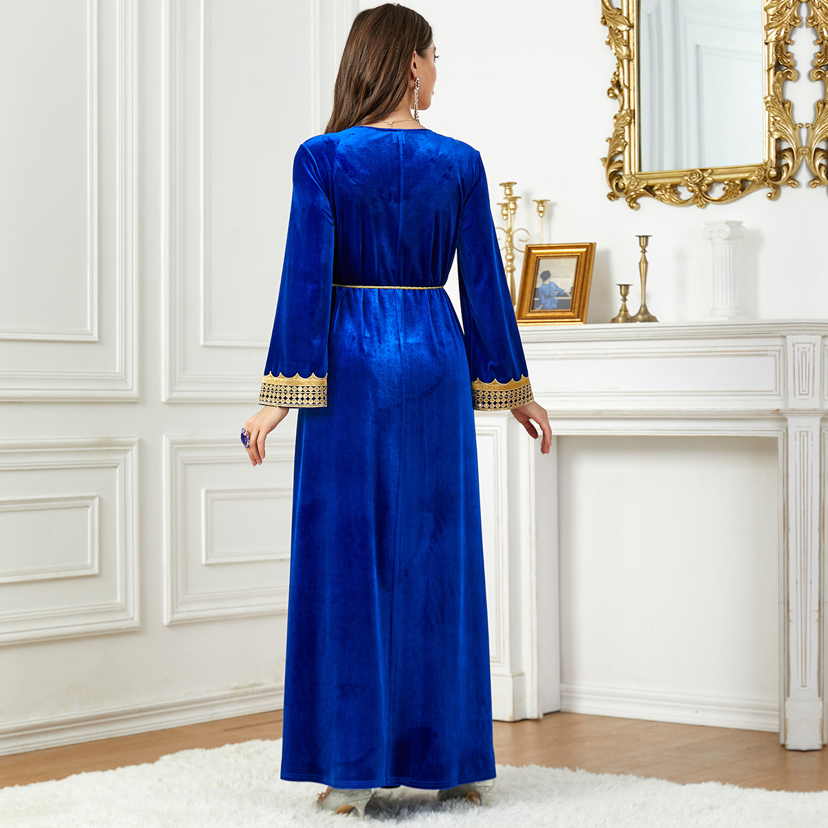 3751 Middle East Dubai Cross-Border Fashion Autumn And Winter Velvet Dress Arabian Clothing Women’s Solid Color Robe