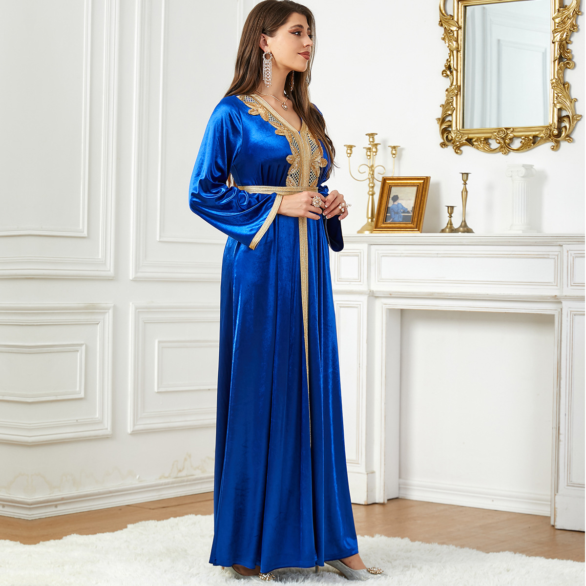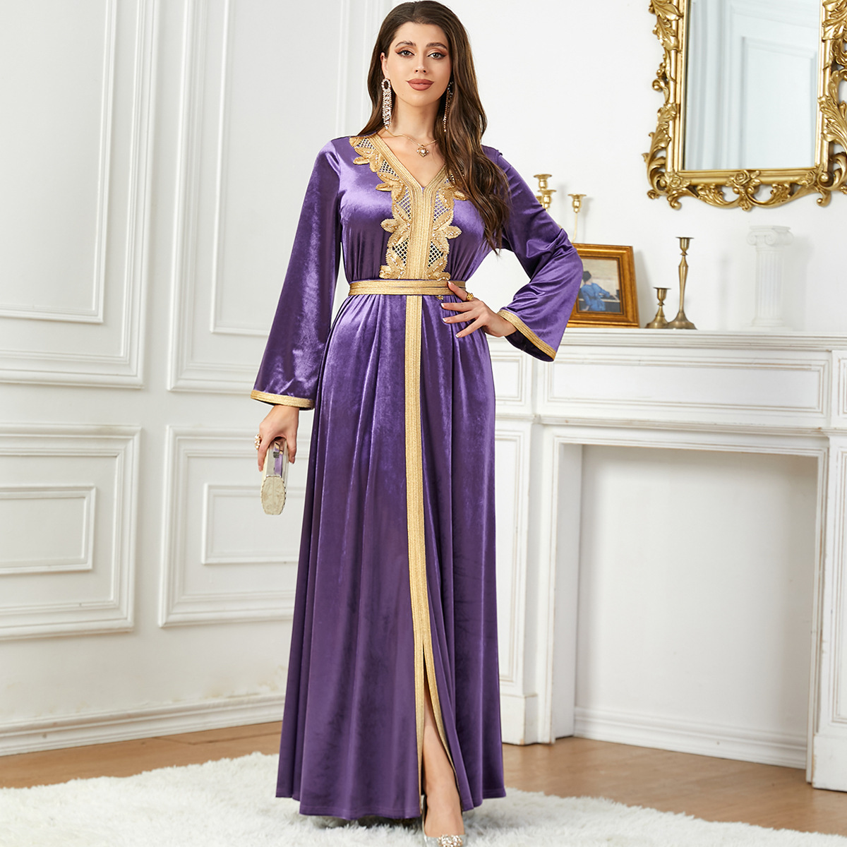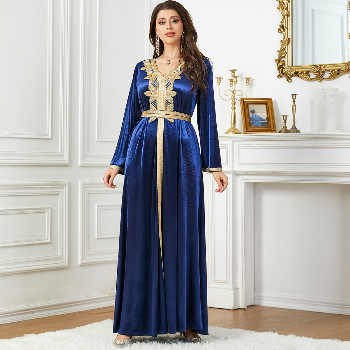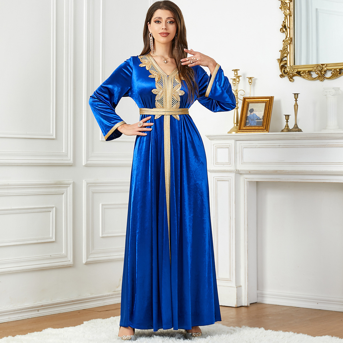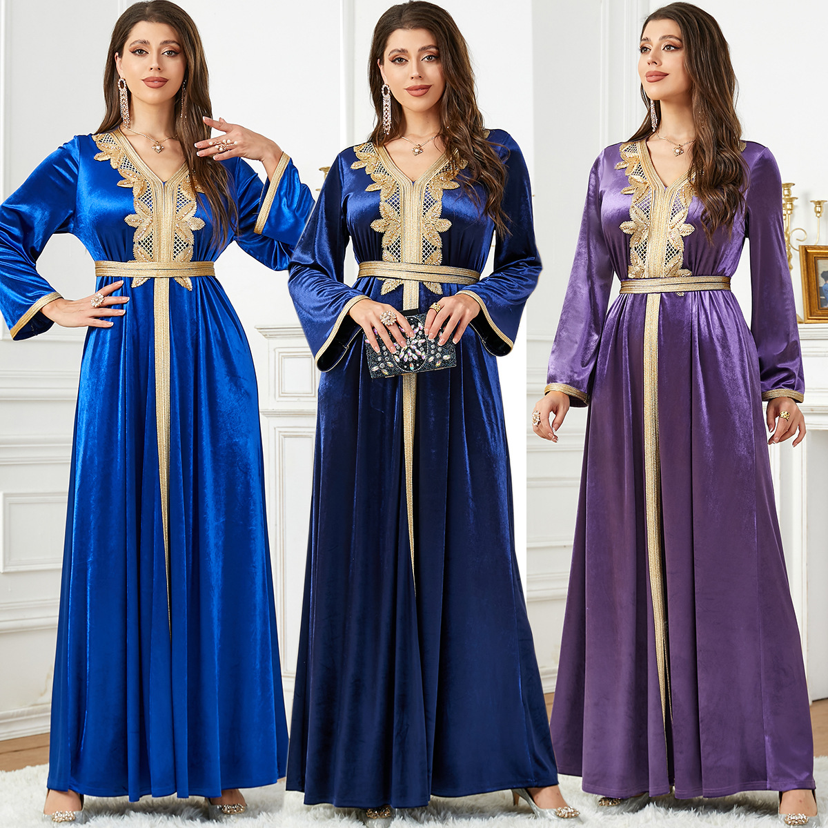 3763 Middle East Muslim New Fashion Autumn And Winter Velvet Women’s Dress Arabic Dress Bright Velvet Skirt