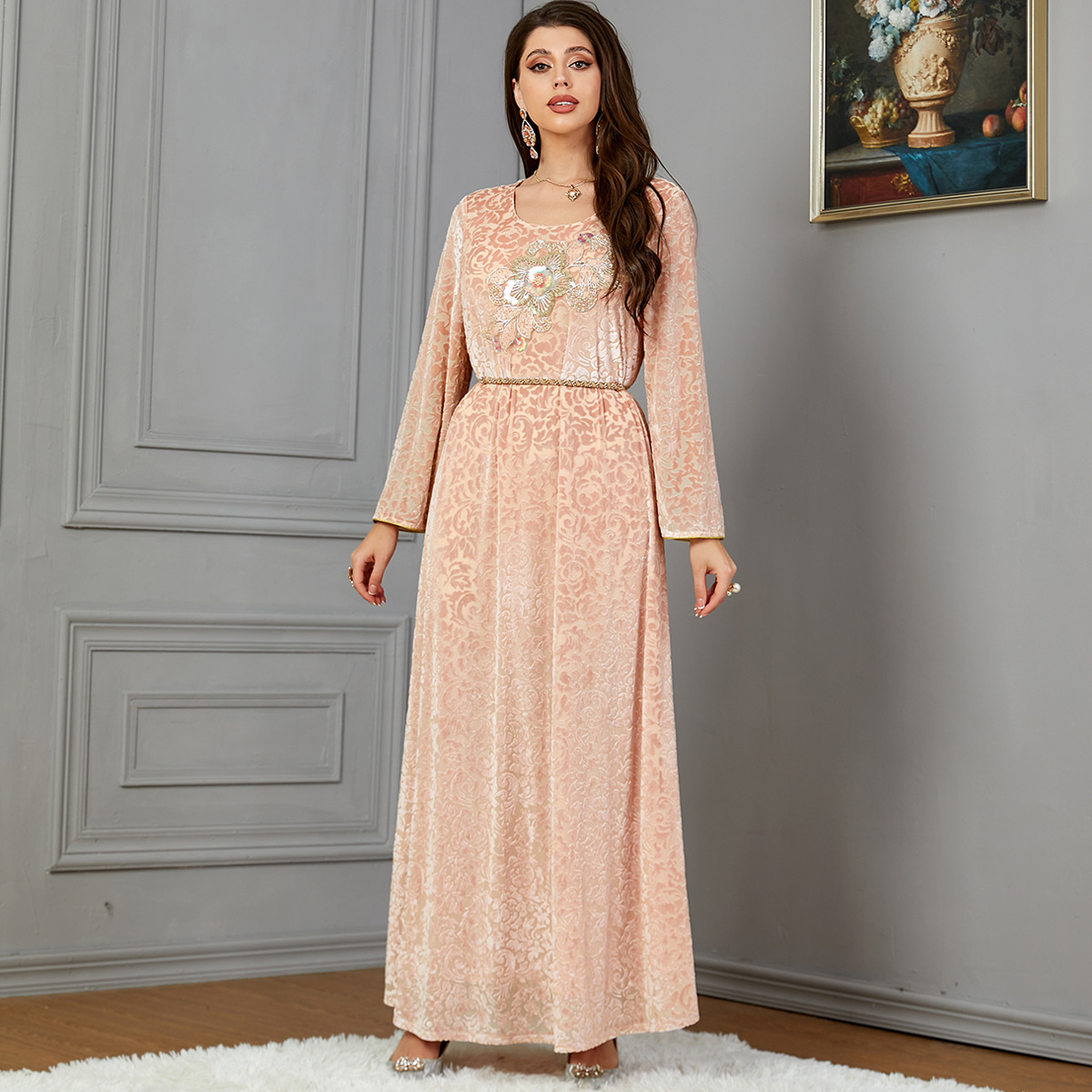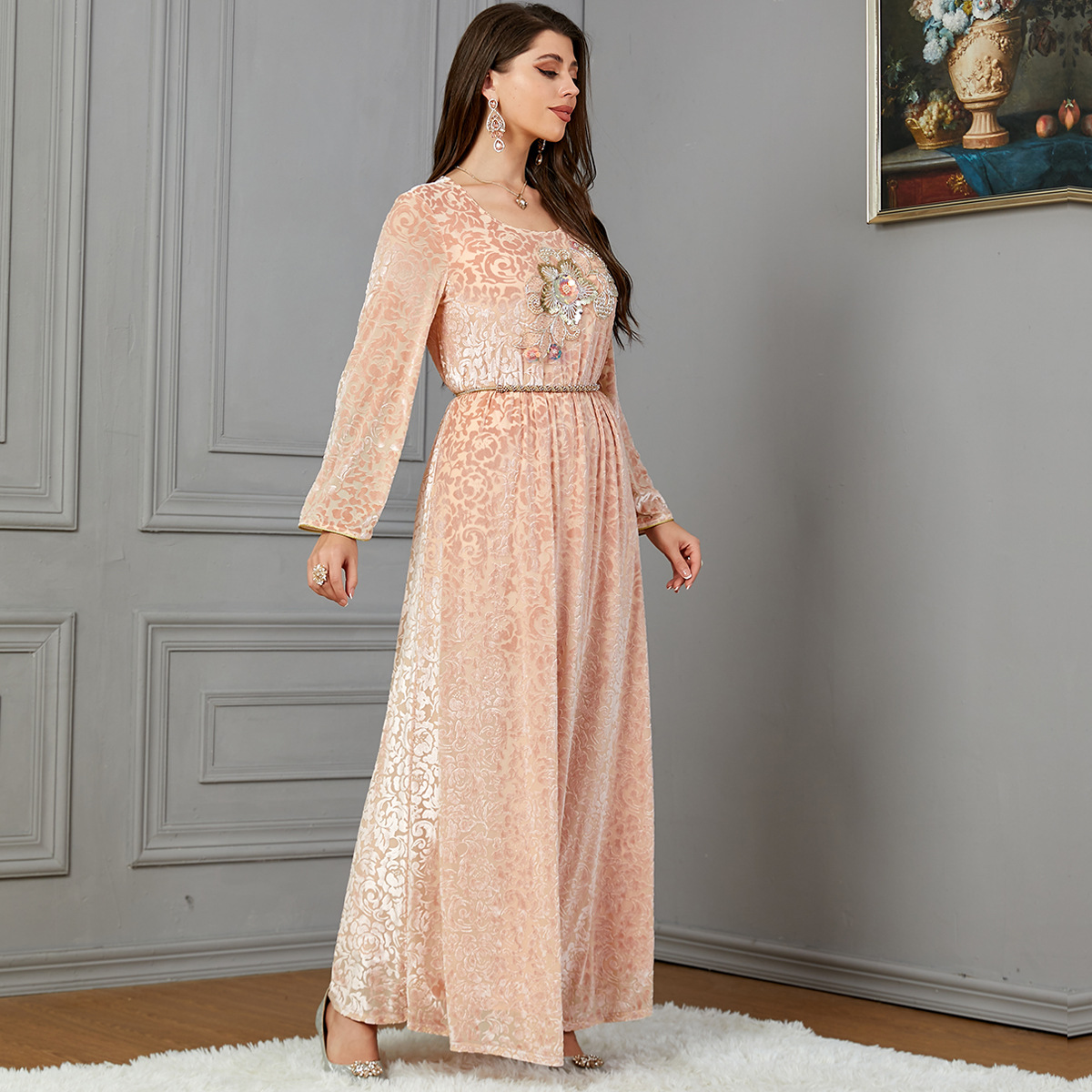 3765 Arabian Autumn And Winter New Velvet Burnt Pink Dress Middle East Dubai Fashion Women’s Evening Dress