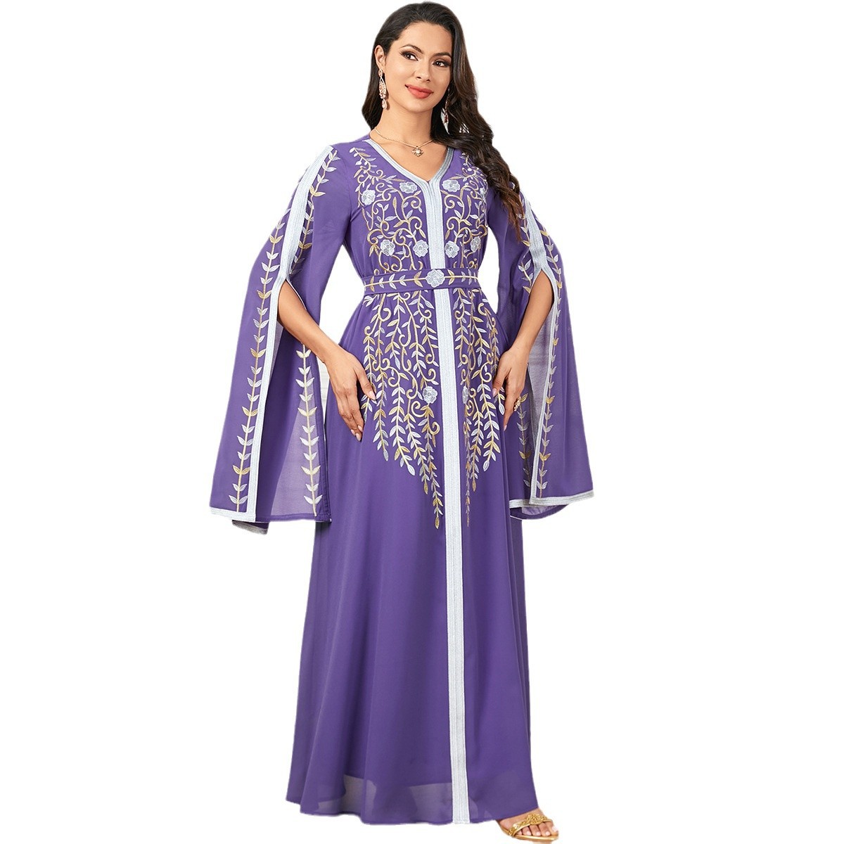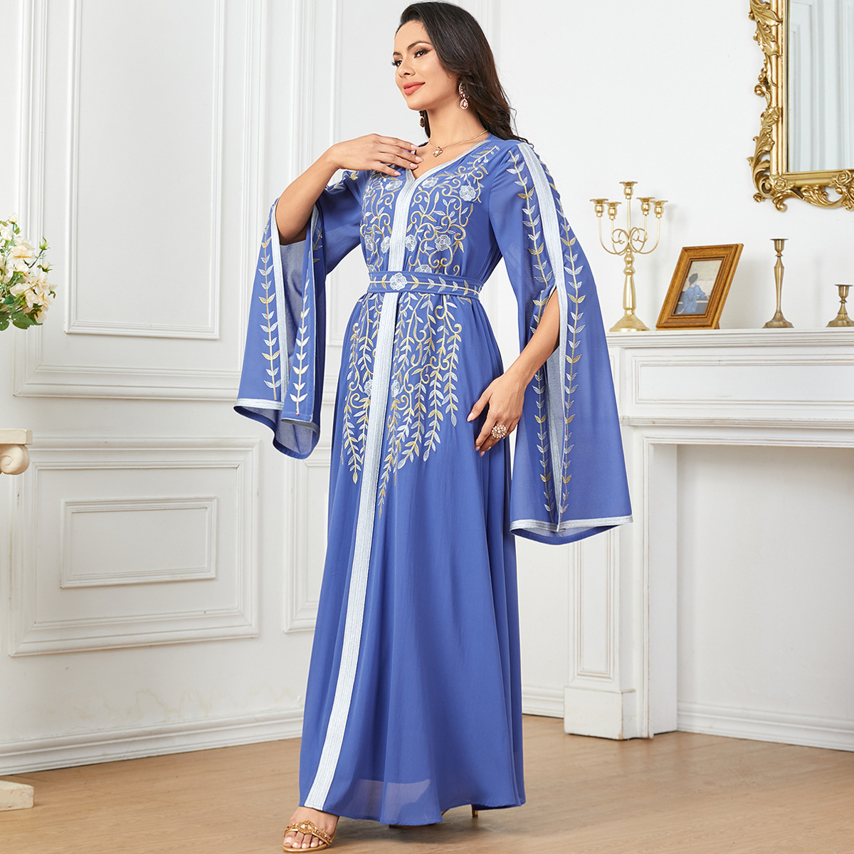 Be the first to review “3925 Amazon European And American Elegant Fashion Long Dress Middle Eastern Muslim Dubai Robe Chiffon Embroidered Dress”