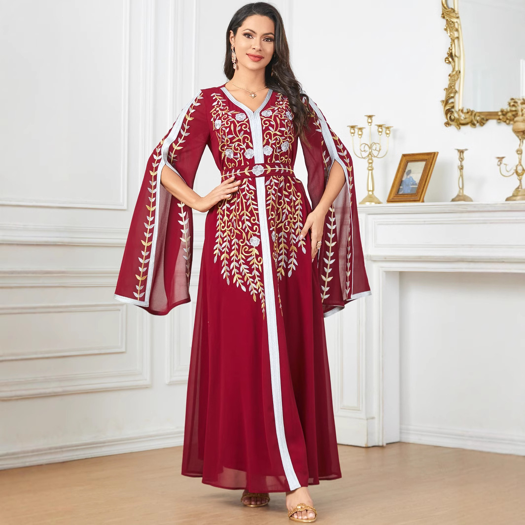 3925 Amazon European And American Elegant Fashion Long Dress Middle Eastern Muslim Dubai Robe Chiffon Embroidered Dress