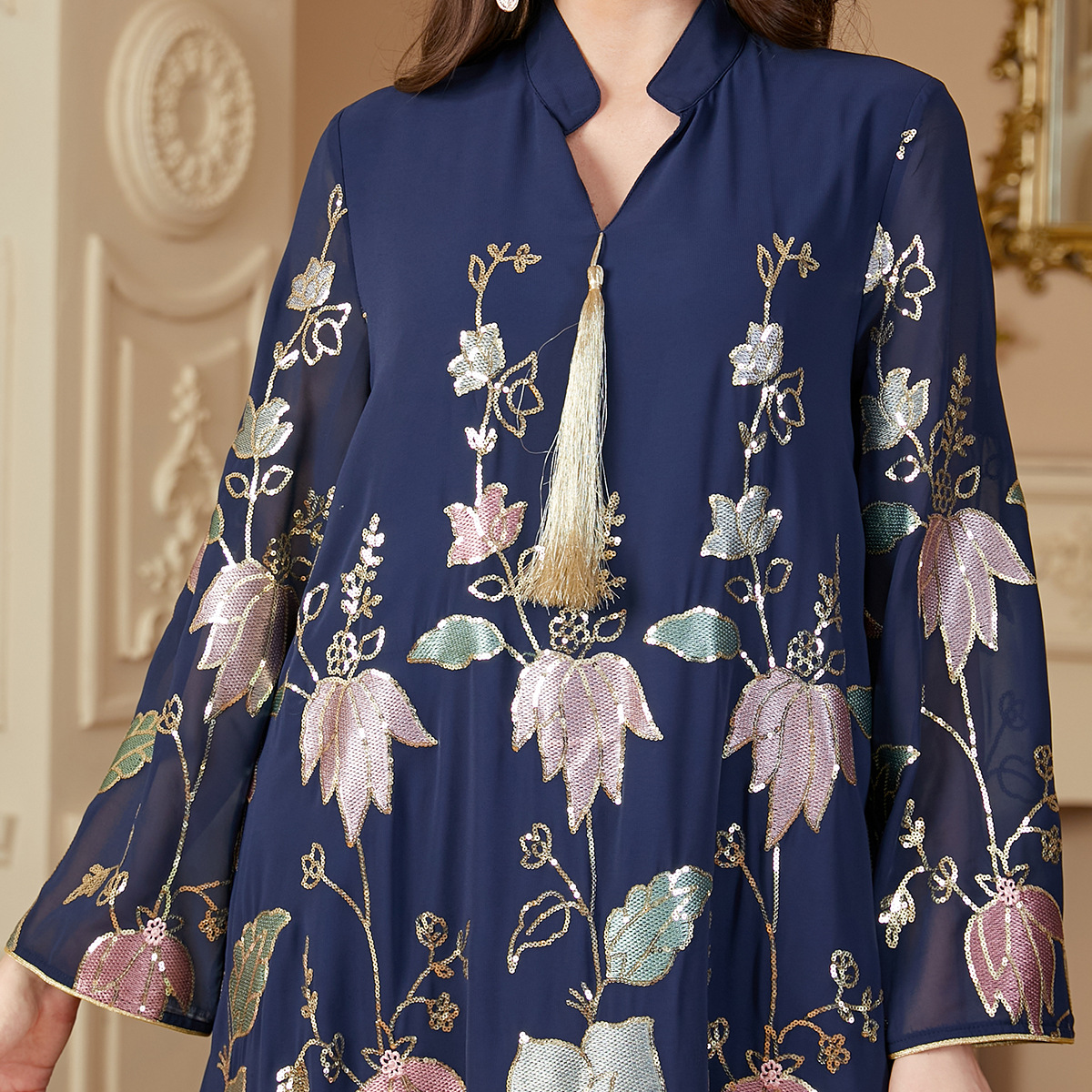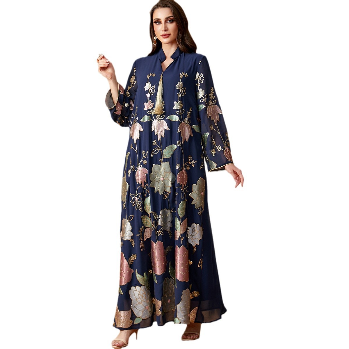 4071 Cross-Border Muslim Middle Eastern Sequin Embroidered Women’s Robe Fashionable Cross-Border Tassel Dubai New Dress
